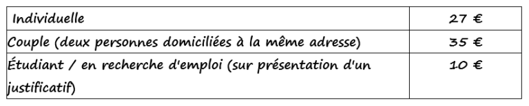 NB: Les nouveaux adhérents doivent le faire exclusivement par chèque ou espèces, accompagnés de la fiche d’inscription
