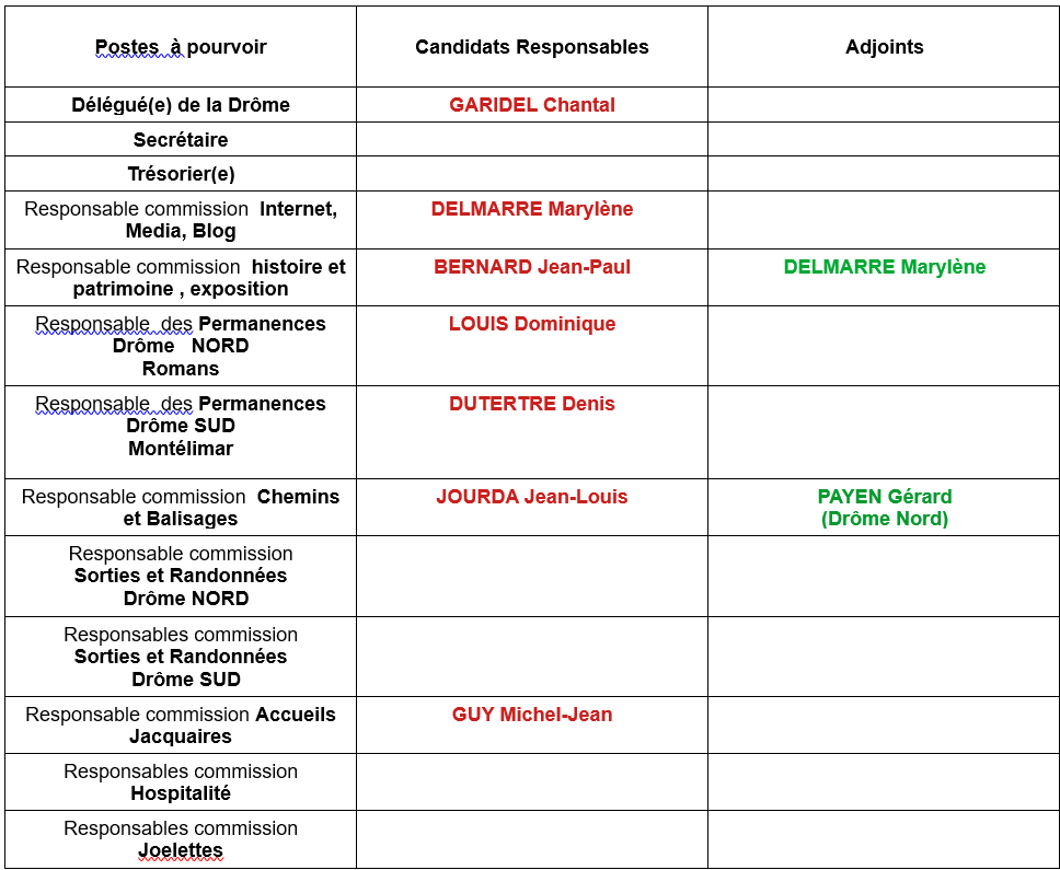 Tous les postes n’ont pas été pourvus mais si certains d’entre vous ont envie de s’engager, il n’est pas trop tard pour présenter votre candidature avant l’Assemblée Générale.