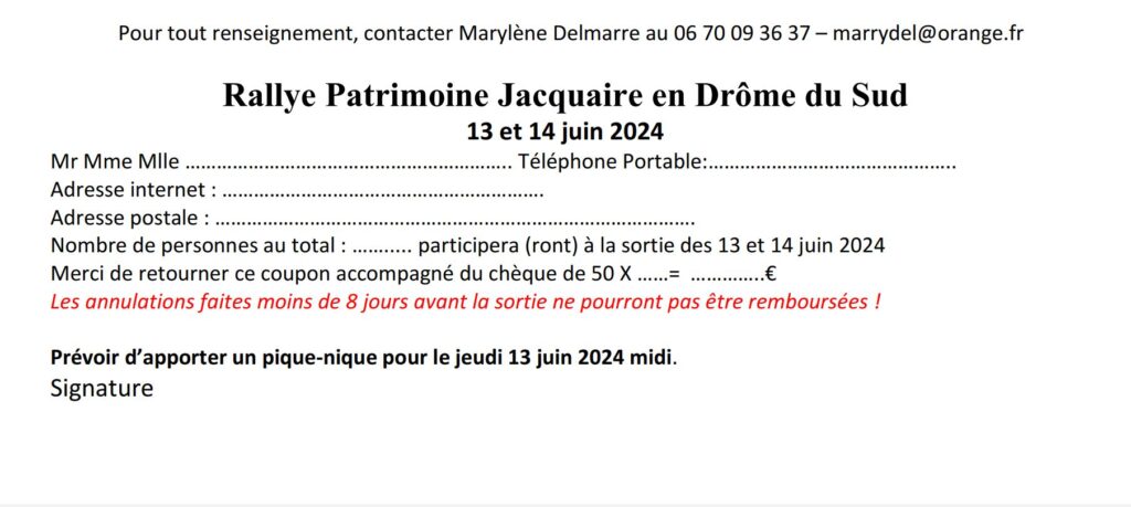 Coût: 50€ à joindre lors de l’inscription par chèque libellé à l’ordre de ARA des Amis de St-Jacques envoyé à Marylène Delmarre – 26 Grande Rue – 26110 LES PILLES – 06 70 09 36 37